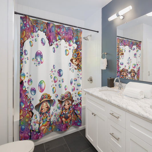 Cute Child Angels Shower Curtain | Childlike Angelic Style Bathroom | Heavenly Themed Bath Decor | "Little Angel"