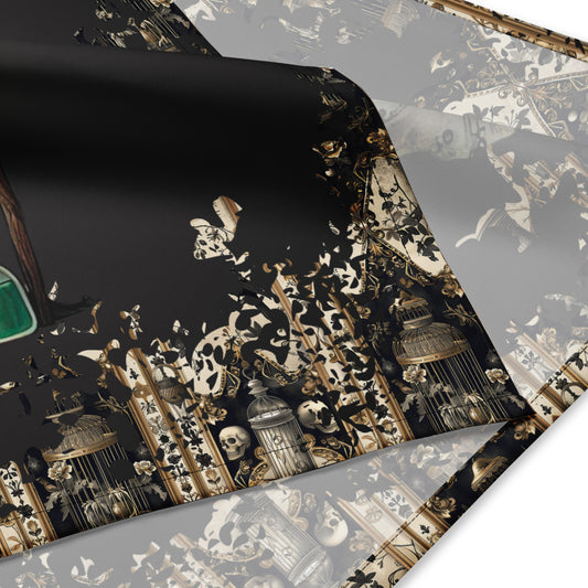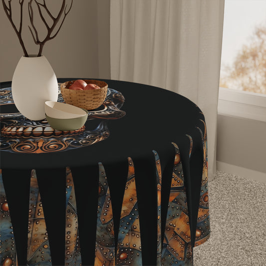 Steampunk Metal Skull on Black Tablecloth | Horror Steampunk Style Kitchen Table Cover | Skull Themed Home Decor | "Steel Sardonicism "