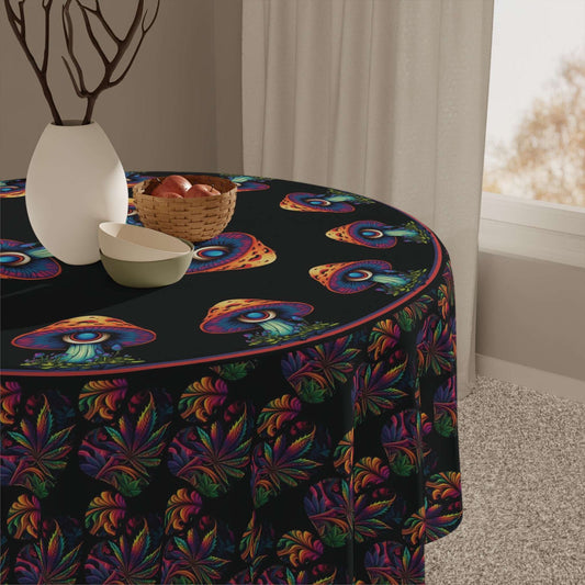 Psychedelic Mushroom Tablecloth | Cannabis Shrooms Kaleidoscopic Table Cover | Mushroom Themed Home Decor | "Fungalvision"