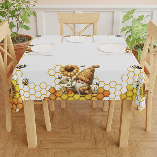 Honeycomb Sunflowers Tablecloth | Gnomes Honeybees Table Cover | Spring Summer Themed Home Decor | "UnbeeGnomes to Me, Honey"