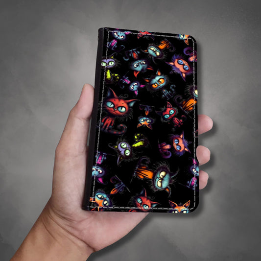Scary Cartoon Style Wallet Phone Case | Spooky Kitties Phone Cover| Cat Art Themed Phone Accessories | "Feline Combine"