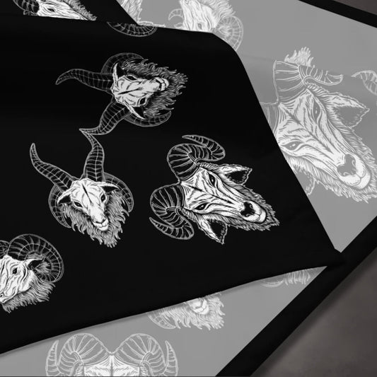 Goats Horns Warning Message Black Altar Cloth | Fuck Around Find Out Tarot Cloth | Horror Themed | "Fuck Around"