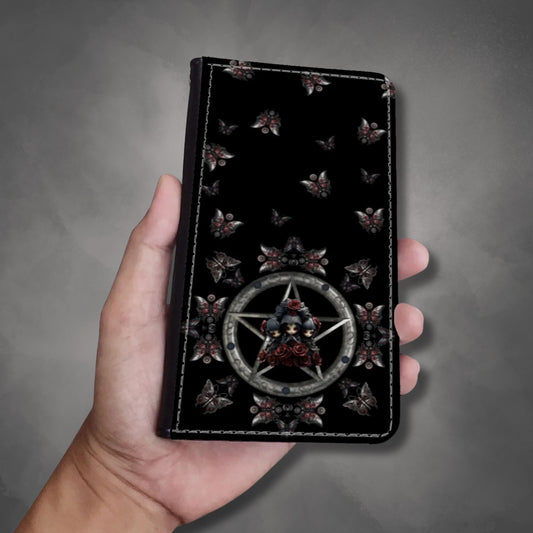 Dark Gothic Steampunk Wallet Phone Case | Steel Metal Roses Butterflies Phone Cover| Dark Goth Themed Phone Accessories | "Heavy Metal"