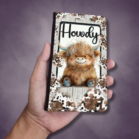 Rustic Farmhouse Wallet Phone Case | Highland Cow Woodprint Phone Cover| Cow Themed Phone Accessories | "Highland Howdy"
