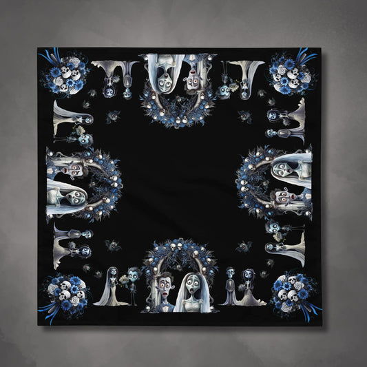 Goth Cartoon Married Couple Altar Cloth | Zombie Wedding in the Woods Tarot Cloth | Undead & Wedded