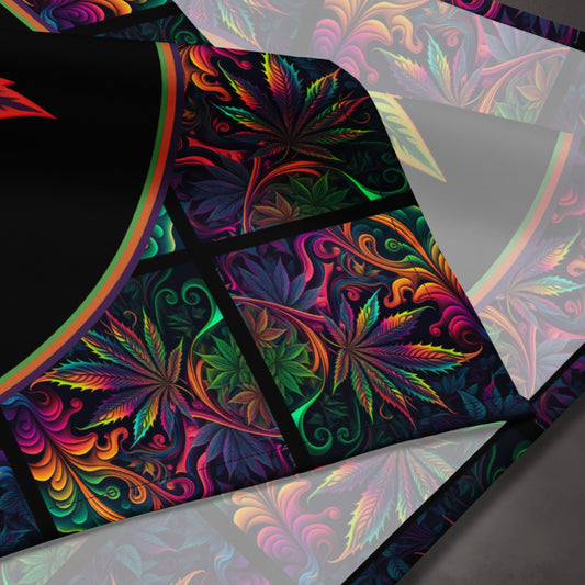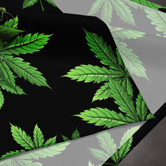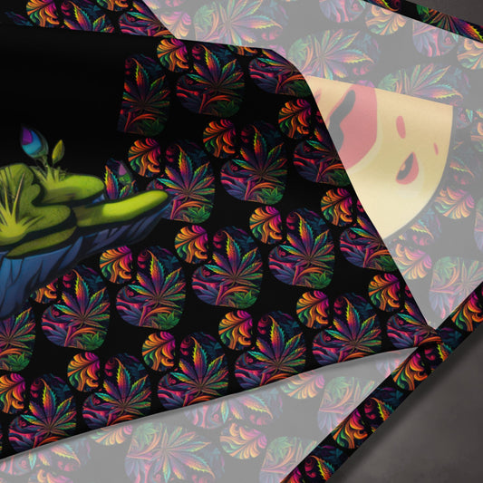 Weed Leaves and Face on Black Altar Cloth | Herbal Style Tarot Cloth | Cannabis Themed | "Pot Head"