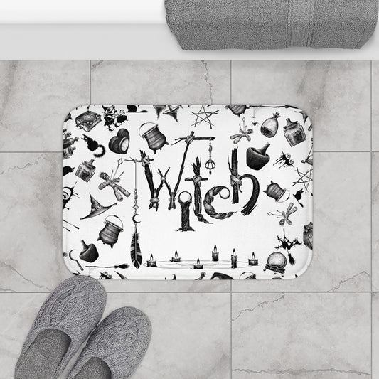 Witchy Pattern Style Bath Mat | Witch Symbols Bathroom Rug | Witchcraft Themed Bath Decor | "Twisted Witch"