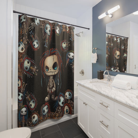 Voodoo Steampunk Shower Curtain | Voodoo Dolls Bathroom Decor | Dark Scary Themed Bath Decor | "Pins and Needles"