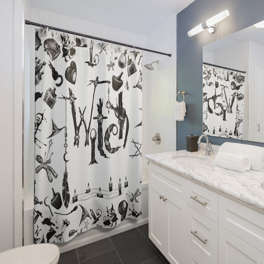 Witchy Pattern Style Shower Curtain | Witch Symbols Bathroom | Witchcraft Themed Bath Decor | "Twisted Witch"
