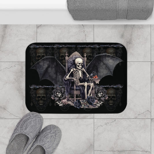 Scary Gothic Style Bath Mat | Skeletons Skulls Bats Bathroom Rug | Dark Goth Themed Bath Decor | "Into the Night"