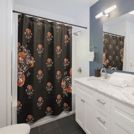 Scary Clowns Shower Curtain | Spooky Clown Kids Bathroom | Horror Themed Bath Decor | "Want Some Candy?"