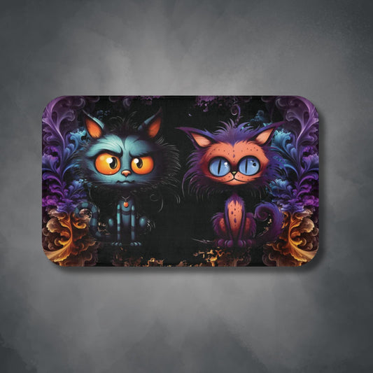 Scary Cartoon Style Cat Bath Mat | Spooky Kitties Bathroom Rug | Cat Art Themed Bath Decor | "Feline Combine"