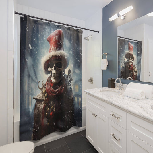 Horror Style Christmas Shower Curtain | Skeleton in a Snowstorm Bathroom Decor | Dark Scary Themed Holiday Bath Decor | "The Bone Chiller"