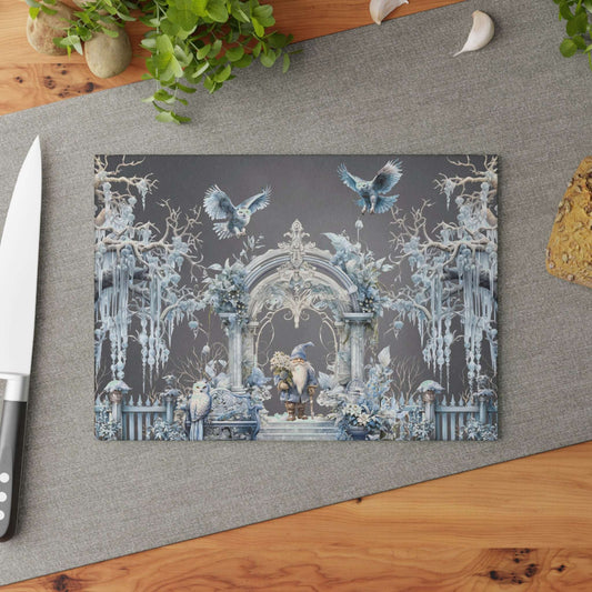 Owls and Wizard Winter Forest Glass Cutting Board | Kitchen Decor | Themed Home Accents | "Winter Dreams"