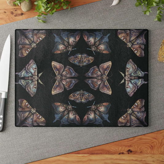 Lunar Moths on Black Glass Cutting Board | Kitchen Decor | Themed Home Accents | "Intuition"