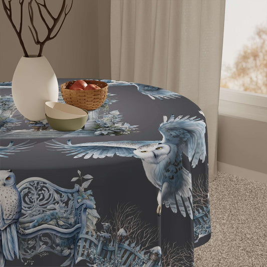 Owls and Wizard Winter Forest Tablecloth | Stylish Table Cover | Fantasy Themed Home Decor | "Winter Dreams"
