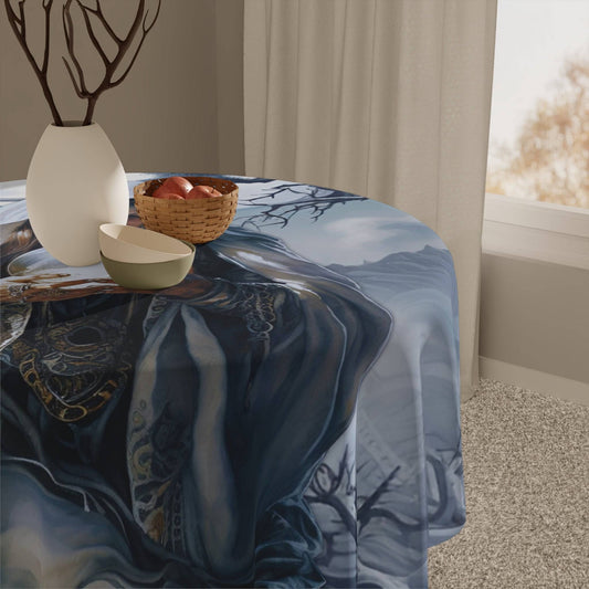 Eclectic Tablecloth | Dark Setting Fortune Teller Crystal Ball Table Cover | Ethereal Themed Home Decor | "Visions"