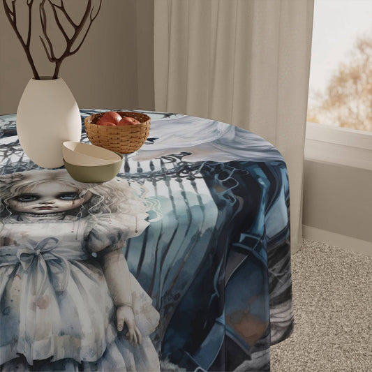 Spooky Gothic Tablecloth | Ghosts Cemetery Scary Little Girl Table Cover | Dark Scary Themed Home Decor | "Let's Play"