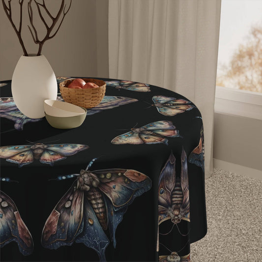 Lunar Moths on Black Tablecloth | Moth Theme Kitchen Table Cover | Home Decor | "Intuition"