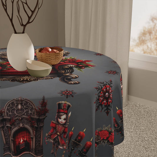 Black and Red Christmas Tablecloth | Black Cat Soldier Fireplace Kitchen Table Cover | Dark Goth Themed Holiday Decor | "A Gothic Christmas"