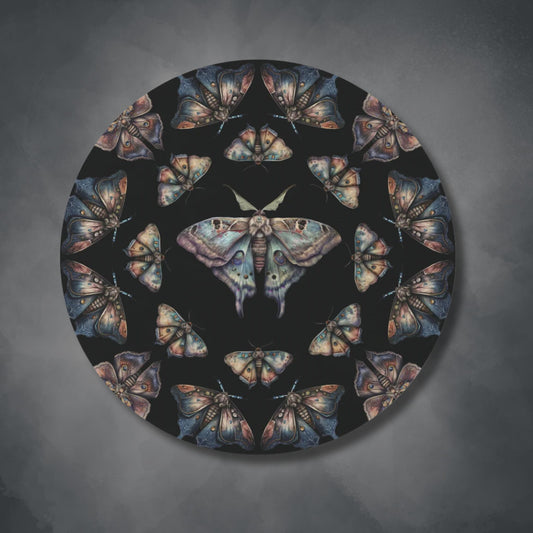 Lunar Moths on Black Round Accent Rug | Area Rug | Themed Home Decor | "Intuition"