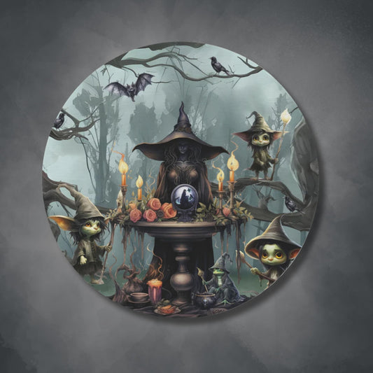 Ethereal Fantasy Style Round Accent Rug | Sorceress Forest Goblins Area Rug | Fable Themed Home Decor | "Queen of the Goblin Forest"