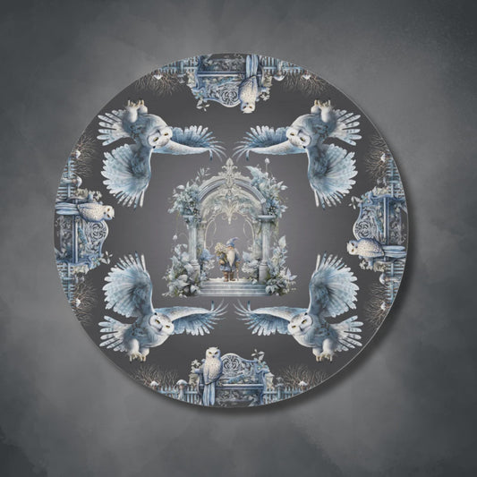 Owls and Wizard Winter Forest Round Accent Rug | Stylish Area Rug | Fantasy Themed Home Decor | "Winter Dreams"