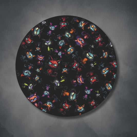 Scary Cartoon Style Cat Round Accent Rug | Spooky Kitties Area Rug | Cat Art Themed Home Decor | "Feline Combine"
