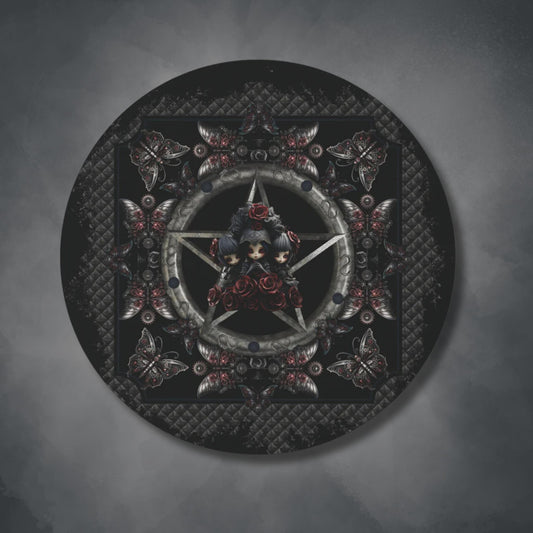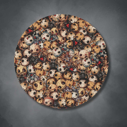 Dark Voodoo Style Round Accent Rug | Voodoo Dolls Area Rug | Black Magic Themed Home Decor | "Stitches and Sabotage"
