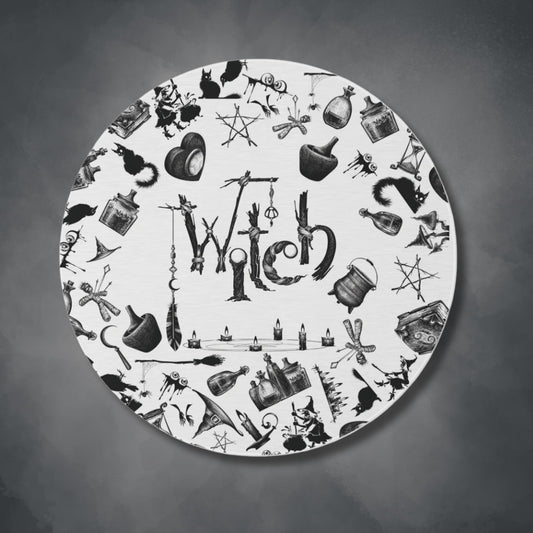 Witchy Pattern Style Round Accent Rug | Witch Symbols Area Rug | Witchcraft Themed Home Decor | "Twisted Witch"